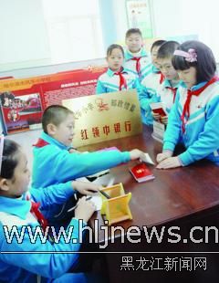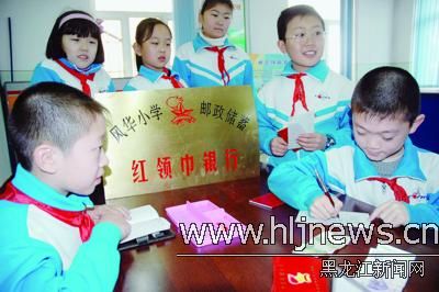 26日,哈市香坊区风华小学的学生在“红领巾银行”储存零花钱。风华小学校辟出专门教室开设“红领巾银行”,“银行”的行长、出纳员全部由学生担任。学生们利用每天午休时间把零用钱储存起来,每名学生会用这些钱给家里的老人买药、配眼镜,为自己购买文教用具,帮助社会上有困难的人。据介绍,开设“红领巾银行”是为了让学生学会如何理财,更重要的是让学生学会如何关爱他人。