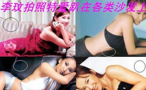 她从出道到走红拍过的所有写真、封面封底很多照片特爱趴在各式各样的沙发上照。不管红的绿的白的花的长的短的。见着沙发就给躺下来拍了。不知道是摄像师要求的,还是她自己觉得这类POSS经典。