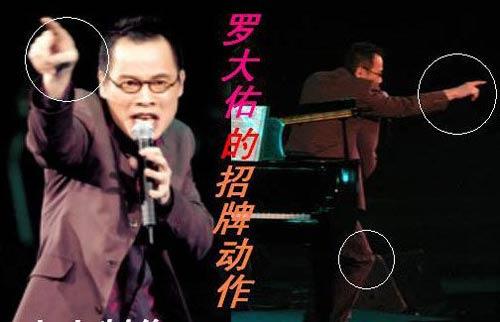 罗大佑不失为华语乐坛的“乐坛教父。不知大家是否熟悉他演唱时的经典神情,每当他唱到高潮部分的时候,上图的动作就出来了。一只手握着麦克风,另一只手指着场下的观众,从左扫到右,再从右扫到左,一只脚也随着节奏一颠一颠地。