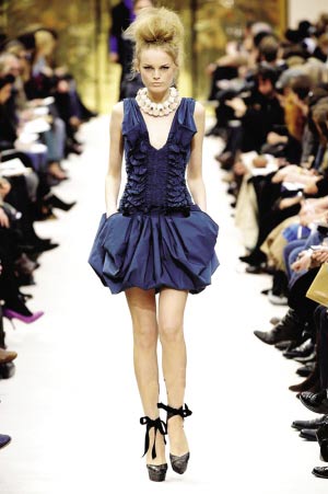 蓬蓬裙是童话故事里的公主最具标志性的打扮,这种长长的、蓬蓬的裙子在随后的时尚演绎中被赋予了高贵、端庄的新注解。当蓬蓬裙与超短裙重新组合,属于它的形容词便不再那么成熟和稳重,于是,可爱甜美的少女味道开始大行其道。