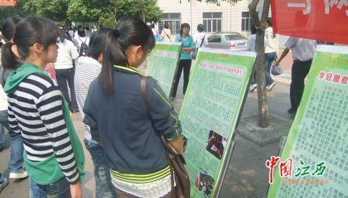 “别在网络中迷失自己”、“大学四年我学到了什么”、“忆起父母鬓间的白发”……,11月4日,一场大型的生命教育主题展在江西理工大学举行,展板从大学生面对现实、沉迷网络、饮水思源、珍爱生命等9个主题出发,教育学生珍爱生命,珍惜大学时光。
