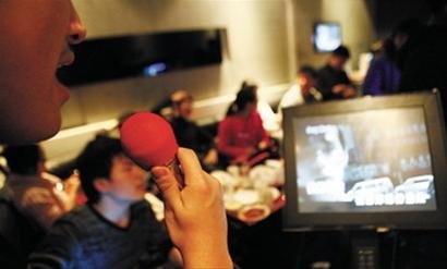 学生在KTV唱歌。