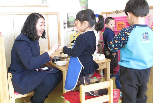 讲座中,张老师讲解了如何充分利用区域的游戏,来弥补集体教学中幼儿的不足,旨在通过区域游戏让每一位幼儿得到发展。讲述结束后,学生们又来到了中班四观察孩子们在区域游戏中是如何表现的。教师们亲身参与其中与幼儿互动,也感受到了孩子们的热情。本次交流,使安丰幼儿园的老师们更加积极。热情地创设并参与区域游戏,幼儿在如此丰富的游戏环境中,不但体验到了快乐,也在社会性和创造力等方面得到了发展。