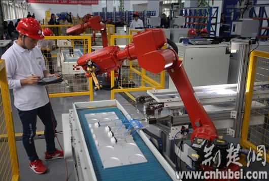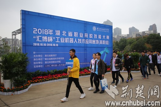 荆楚网消息(记者 许文秀 通讯员 谢萍 摄影 大学生记者 王斐昱)10月16日上午,2018年湖北省职业院校技能大赛工业机器人技术应用赛项(高职组)在湖北科技职业学院拉开帷幕。全省29所高职院校的170名选手现场比拼,在“实战”平台上展示高职学子风采。
