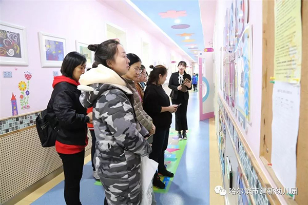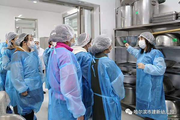 本次会议是新小班家委会成员的第一次会议,家长们穿戴口罩、鞋套及一次性防护服,零距离参观了幼儿在园的食品卫生安全情况。杜主任对厨房的食品仓库、粗加工间、配餐间、烹饪间、洗消间以及幼儿食品制作过程进行了全方位地讲解。随后,家长们参观了幼儿园的环境创设,着重介绍了幼儿园走廊的文化布局设计,让家长们对幼儿园的教育教学活动有了更直观的认识。